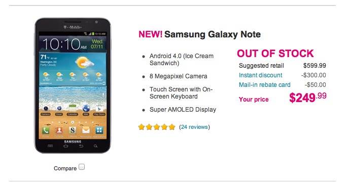 Samsung Galaxy Note Returns To T-Mobile Website, Still Out Of Stock